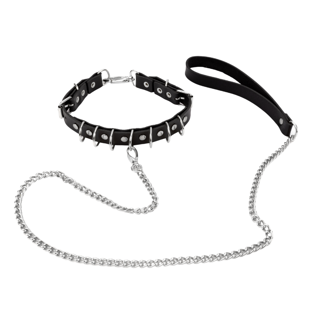 Possui acabamento impecável com meia argolas em toda sua extensão tornando a peça elegante, sexy e luxuosa. Acompanha guia com corrente e alça de manuseio que pode ser usada junto com a peça, proporcionando novas possibilidades de uso. Acessório feito à mão, ajustável de acordo com sua medida.