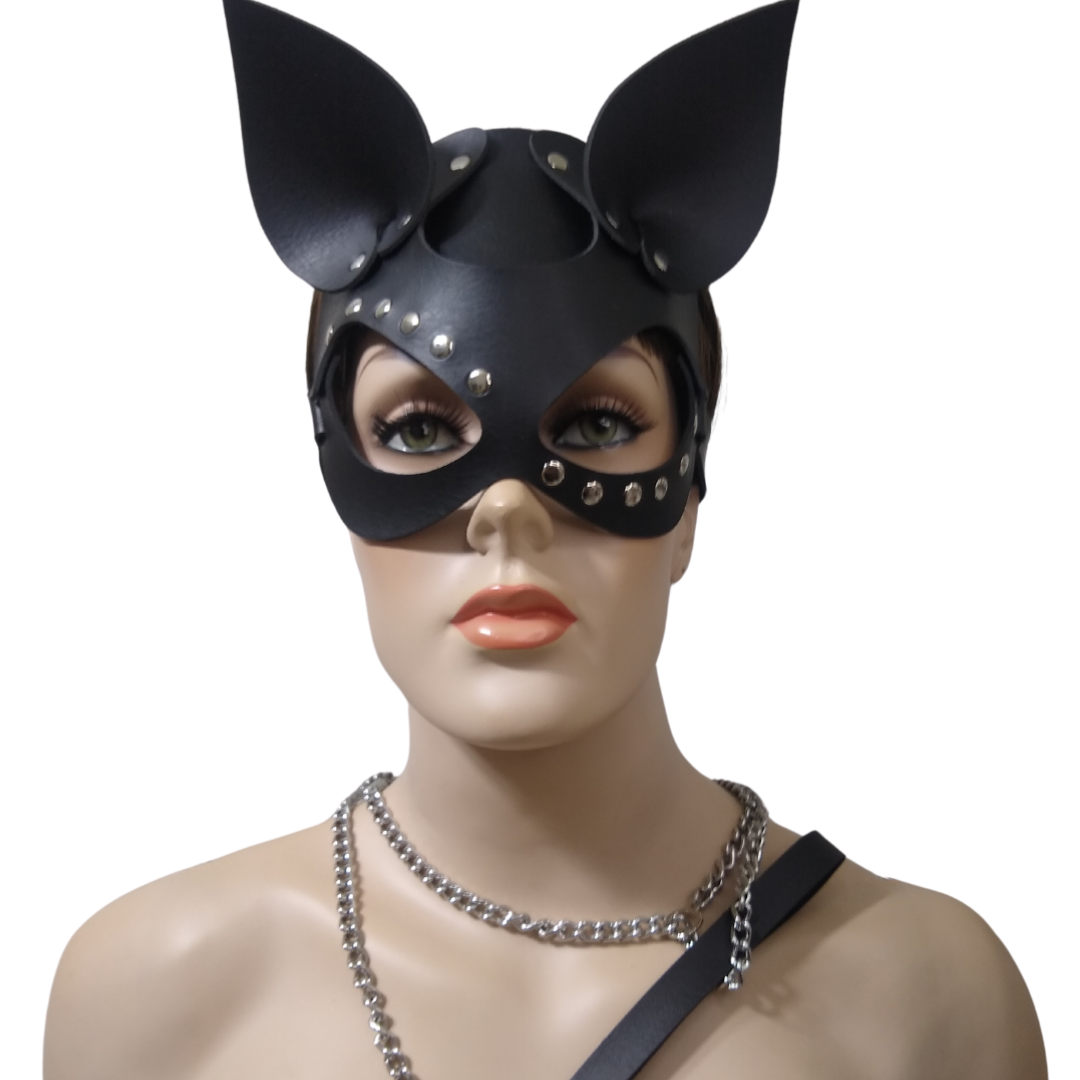 Este modelo de acessório é todo confeccionado em material Montana de altíssima qualidade, com fino acabamento. A máscara possui um formato de orelha diferenciada , proporcionando um visual de grande apelo fetichista.Tamanho único com tiras reguláveis. Utilizado para complementar sua fantasia erótica.